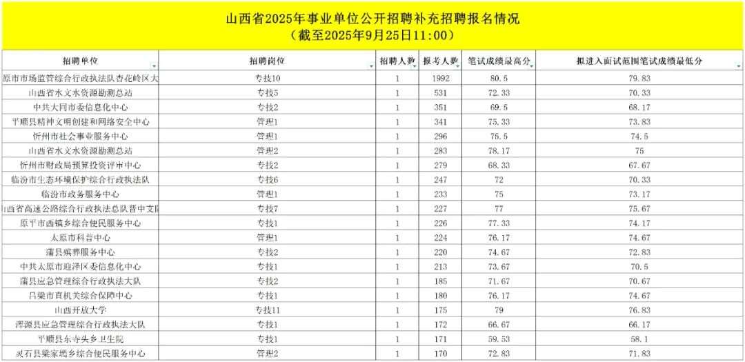 山西省2025年事业单位公开招聘补充招聘第二天已报名 19903人!