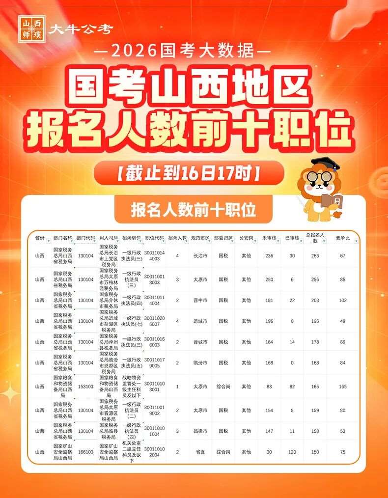 11124人!*大报录比165:1!山西2026国考第二天报名情况出炉!