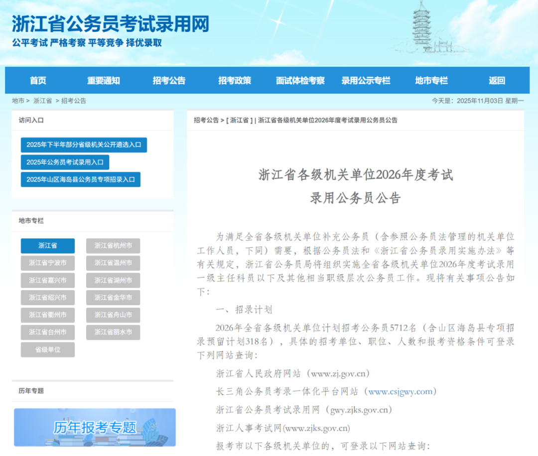 🔈招录人数:5712人,去年7329人。