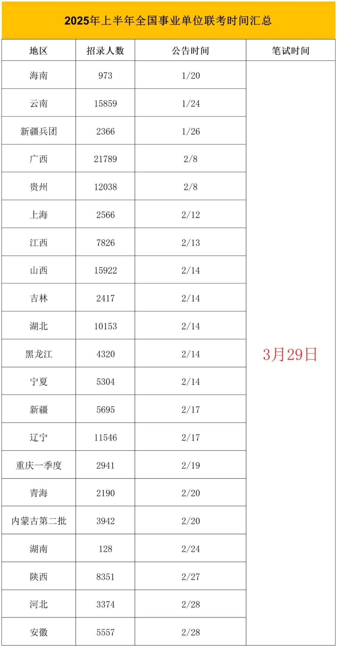 2025年上半年辽宁事业单位联考公告时间发布时间为2月17日,笔试时间为3月29日。