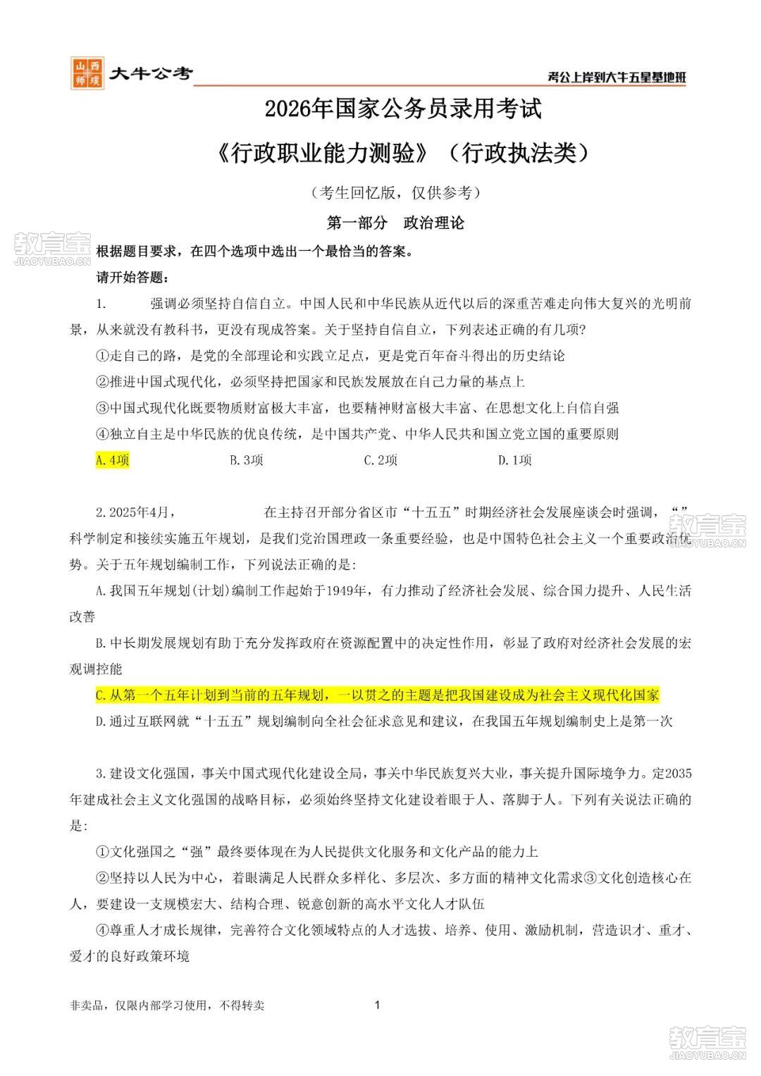 速来估分!2026国考笔试真题及答案解析(考生回忆版)出炉!