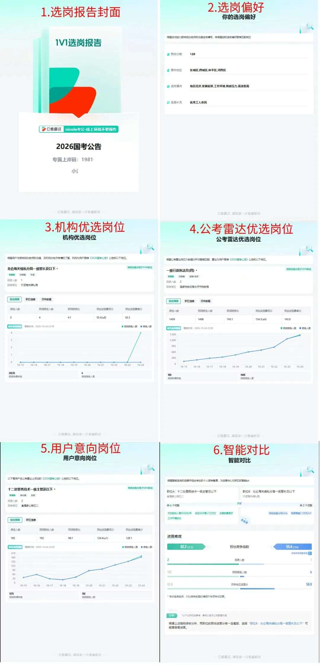 3.竞争算得清:把岗位实时报名数、近 5年竞争比、进面分梯度揉成 “性价比指数”,直接给你标红 “竞争低、适配高” 的岗 —— 比如某乡镇小学岗竞争比 1:30,还带补贴,比城区 1:200 的岗香多了