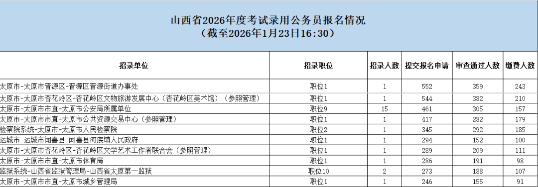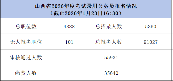省考第四天 | 截止23日下午16:30点山西省考已报名9.1万人,*高竞争比552:1!