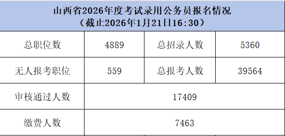 省考第二天 | 截止21日下午16:30点山西省考已报名39564人,*高竞争比300:1!